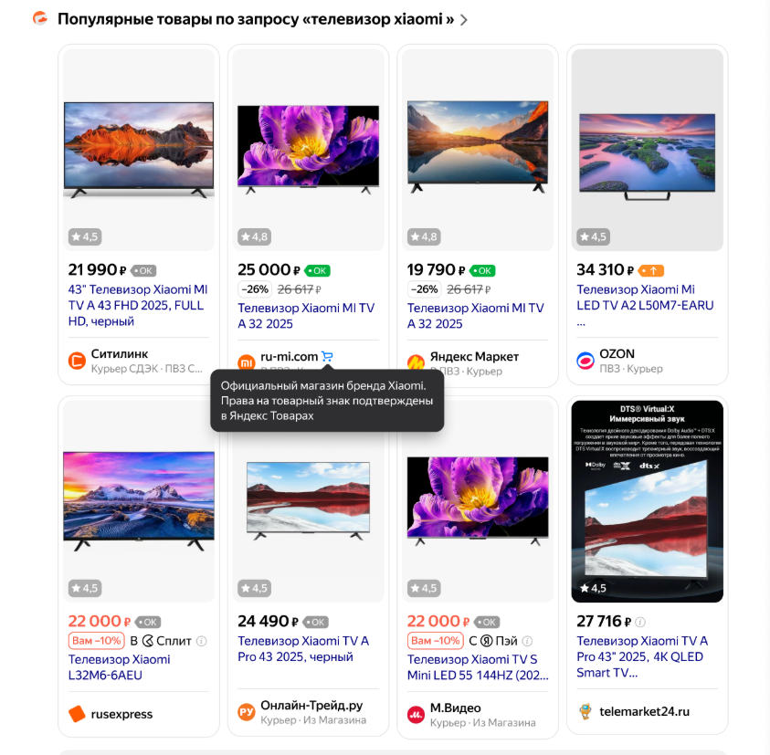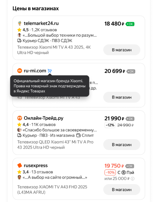 Опция «Официальный магазин» теперь доступна не только для самих производителей, но и для тех, кто реализует их продукцию, — является официальными представителями или дистрибьюторами брендов, и продает преимущественно товары того или иного бренда.