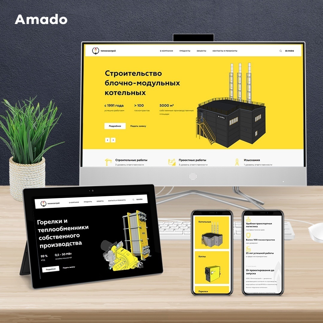 Поэтому перед специалистами «Амадо» встала задача — создать современный и яркий сайт, позволяющий полноценно презентовать в онлайн-пространстве как саму компанию, так и ее продукцию.